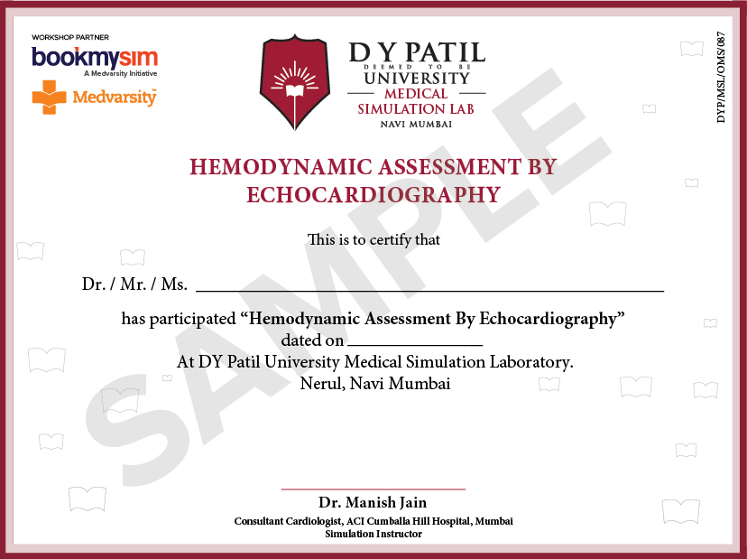 - Hands-on training on Transesophageal and Transthoracic Echocardiography at D.Y. Patil Medical Simulation Lab, Mumbai on 30th March 2021.